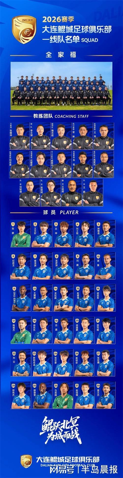 总经理兼主教练张耀坤表示,新阵容需要磨合,全队要团结在一起,为了共同目标,努力拼搏。鲲城肯定是要进入顶级联赛,这是个时间问题。对于2026赛季,自己有所期待,希望能够打出最好成绩。